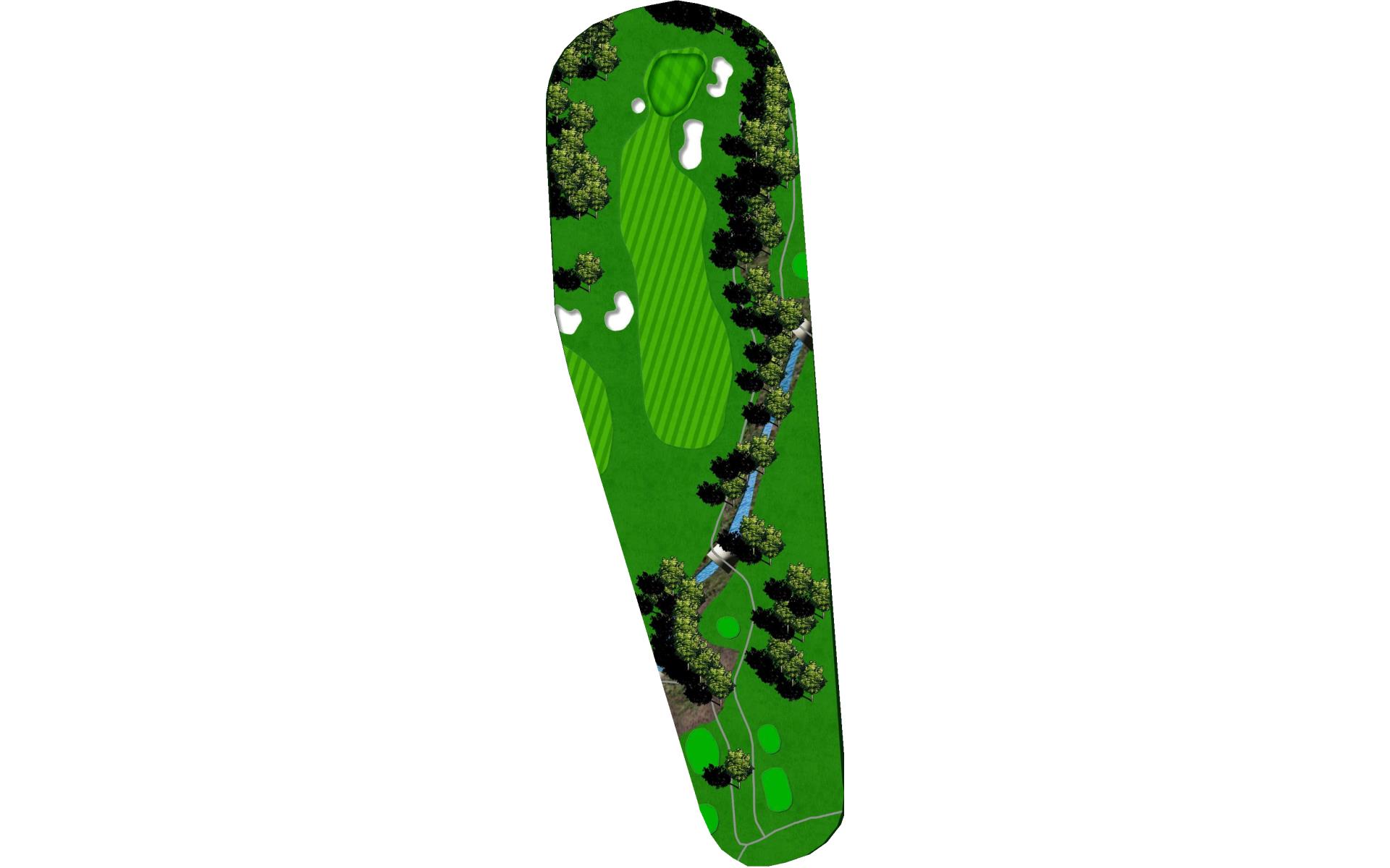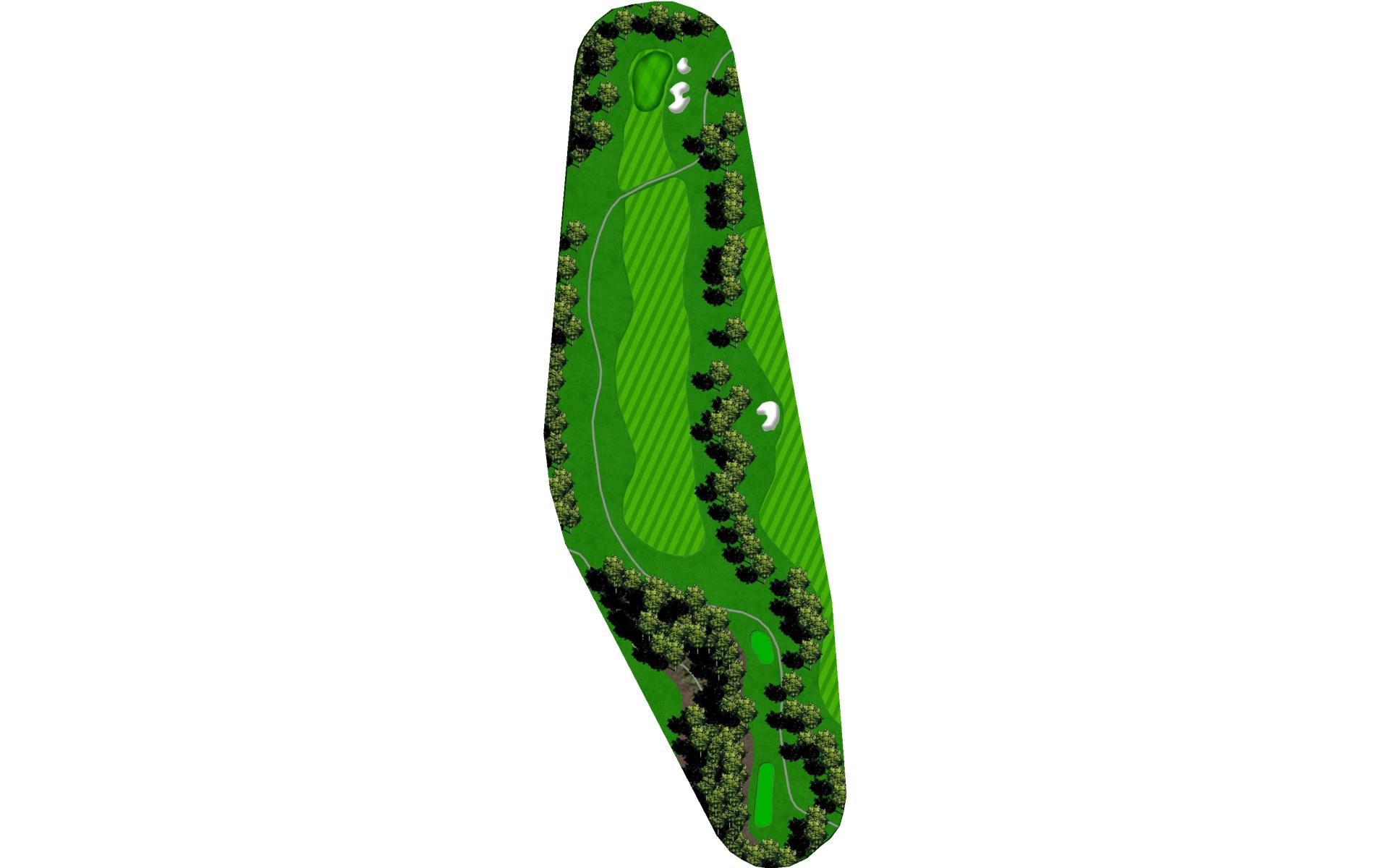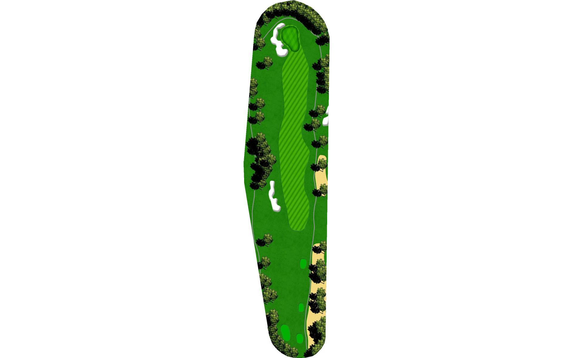 This par 5 slopes slightly uphill. The second shot slopes left-to-right, so players will want to keep their ball left to play from the center. The green is well-protected where the best miss is long and left.