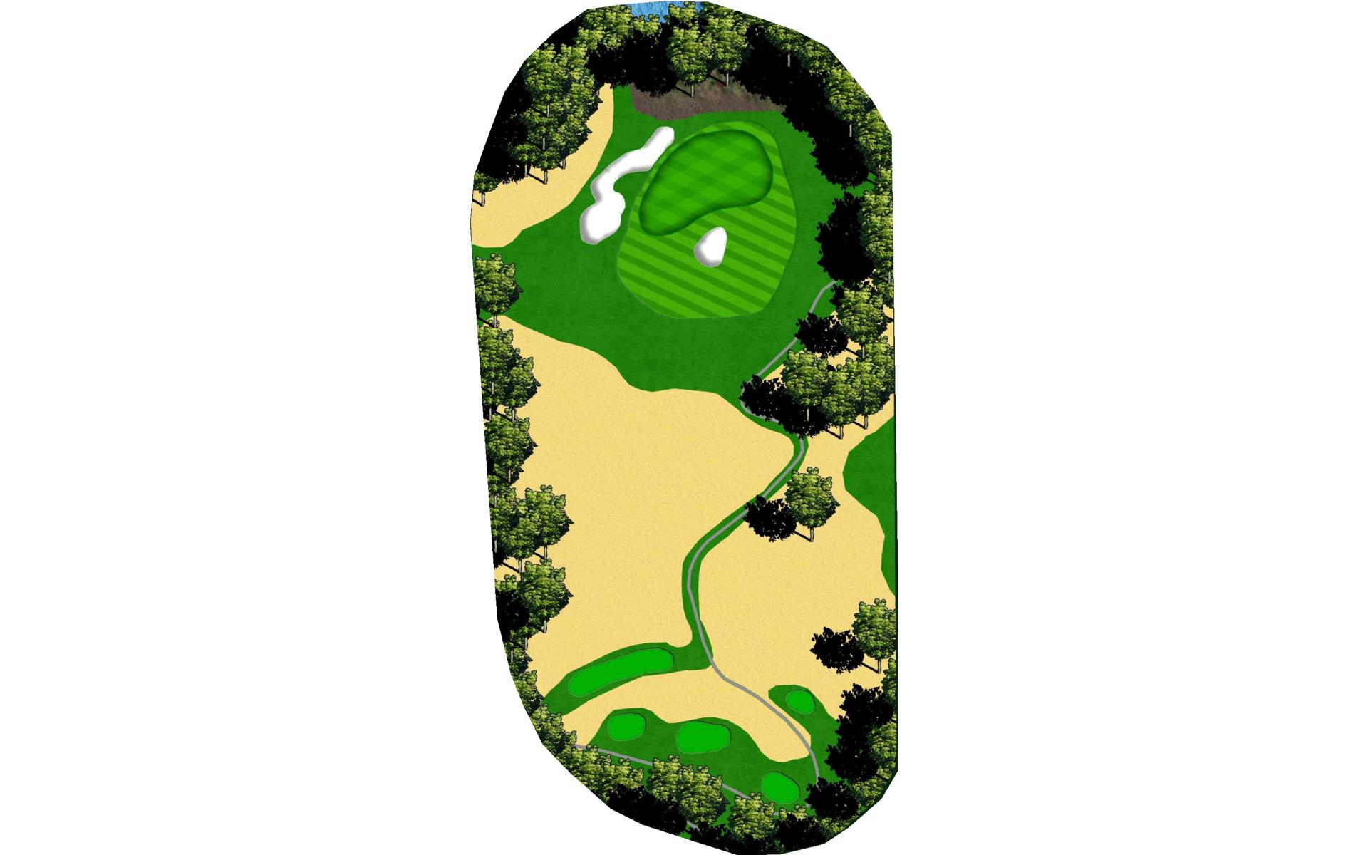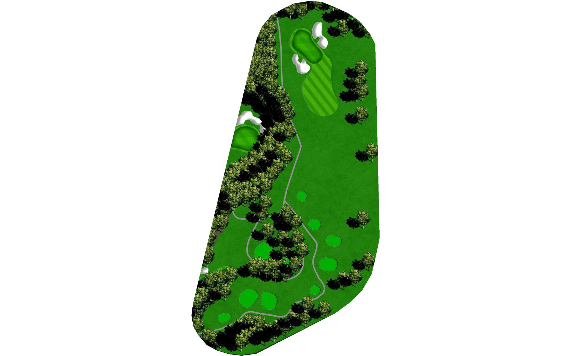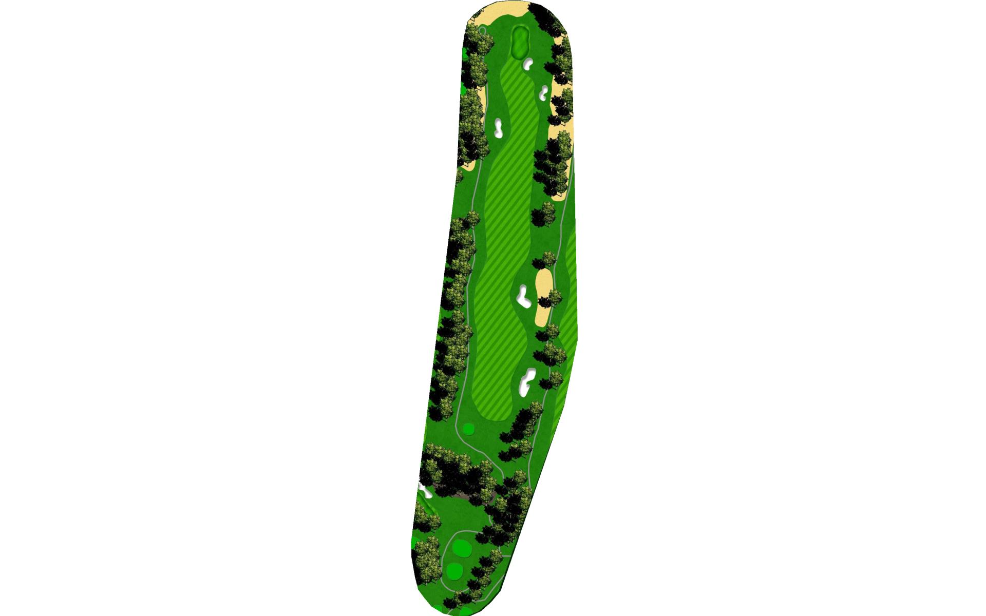 This par 5 slopes slightly uphill. The second shot slopes left-to-right, so players will want to keep their ball left to play from the center. The green is well-protected where the best miss is long and left.