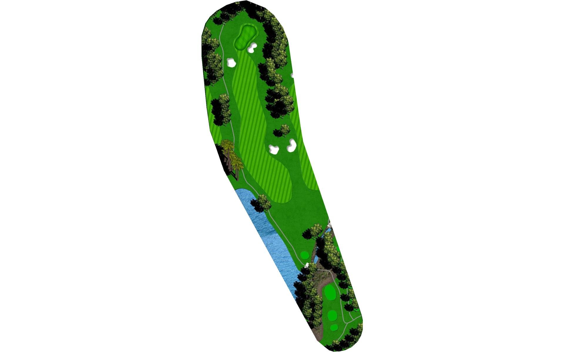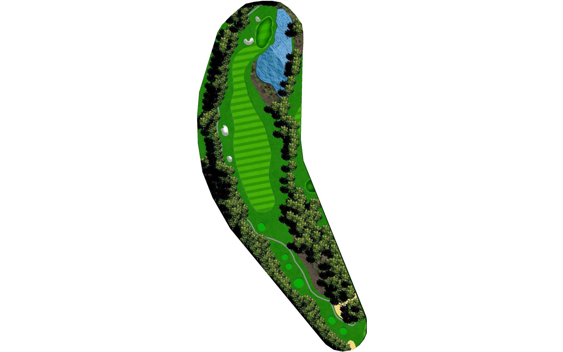 Next is the hardest hole on the golf course, which is also the longest par 4. An ideal tee shot will be down the right side of the fairway, setting up the best chance of hitting the green in regulation. The green is well-protected by bunkers and a pond that catches a lot of balls.