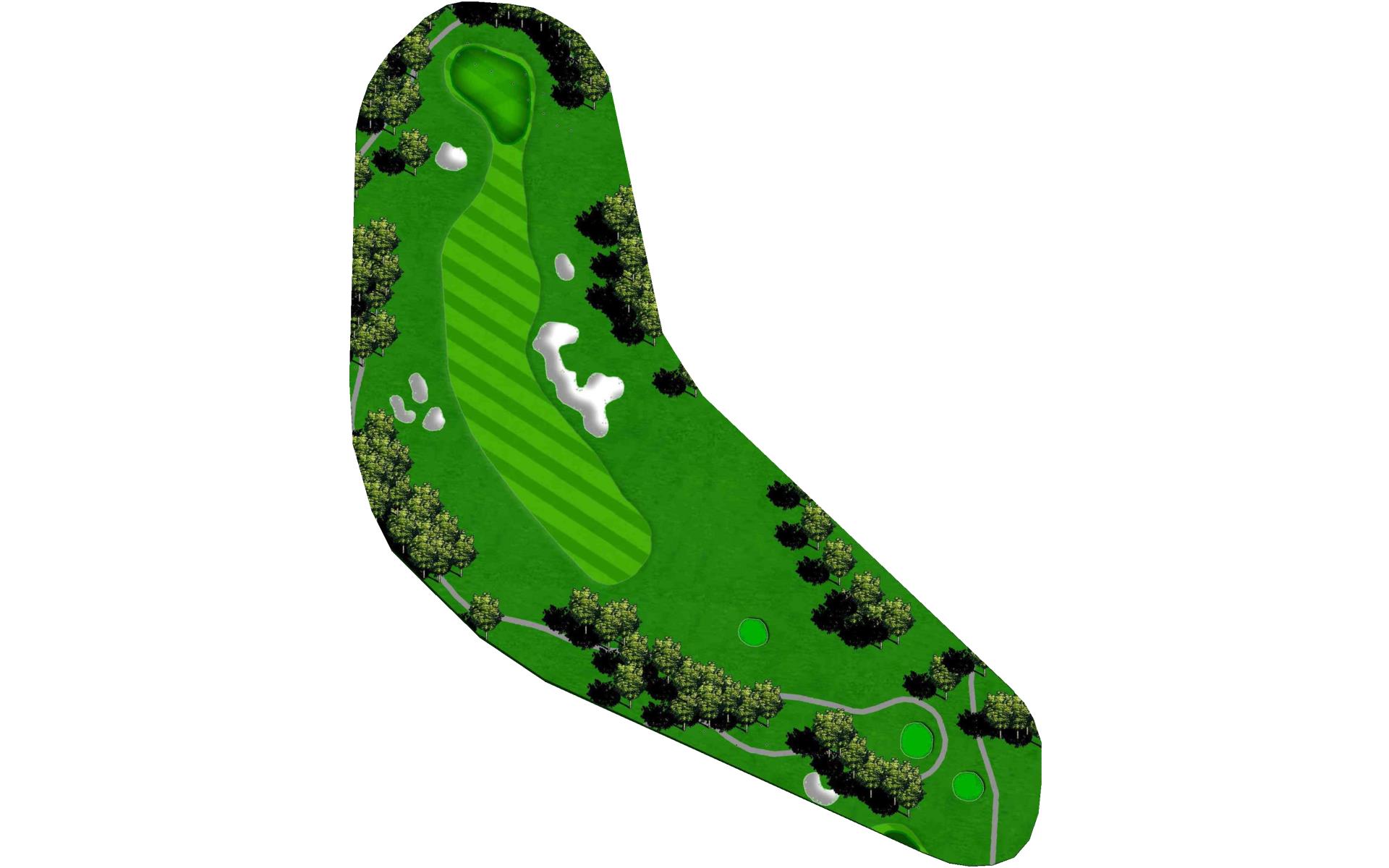 The third is a risk-reward dogleg right par 4. Some of the longer hitters may take a chance at driving the green. Bunkers guard the corner and players will want to avoid the 100+ yard bunker shot.
