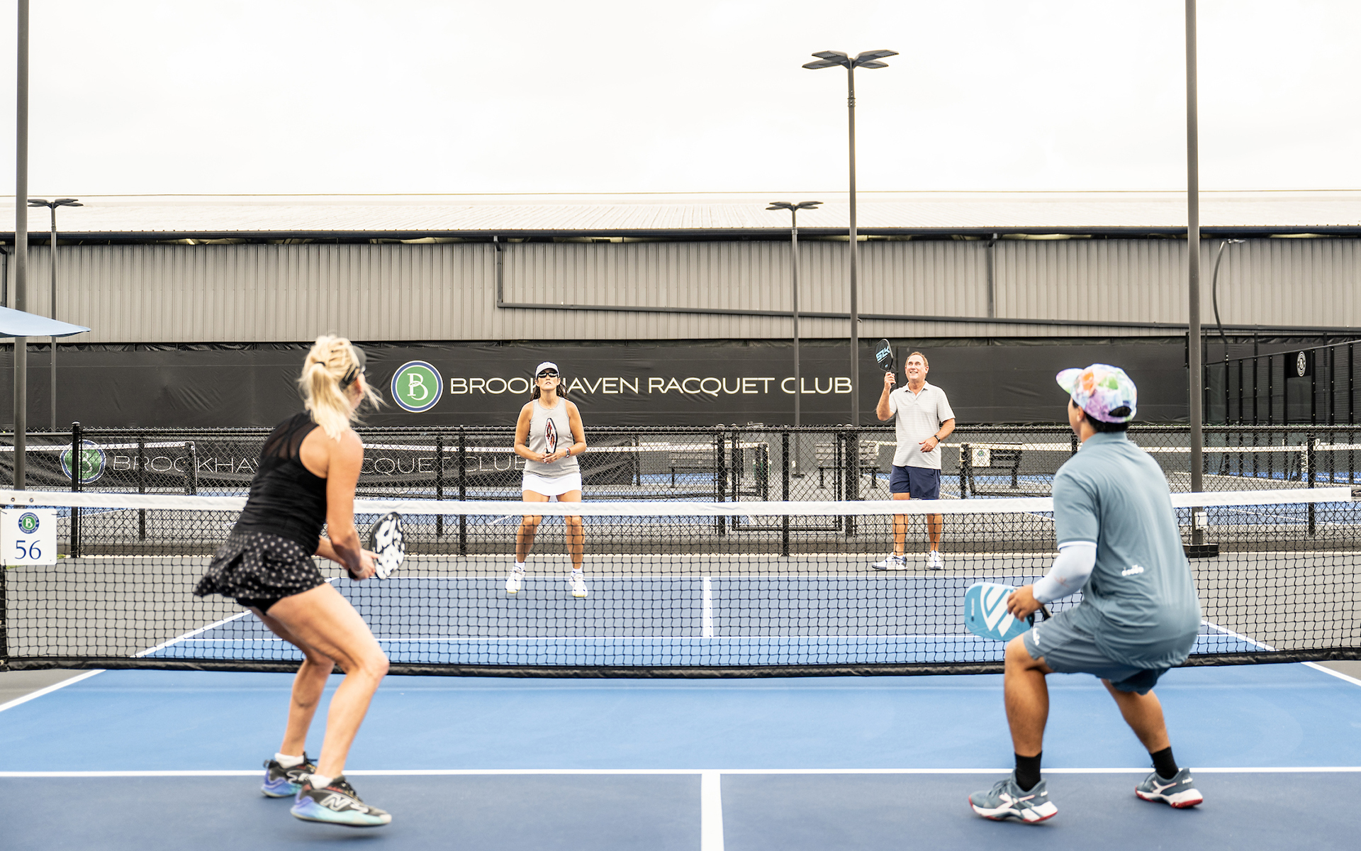 We now offer 30 pickleball courts, including 26 outdoor and four covered. As the fastest-growing sport in America, pickleball is a unique blend of ping pong and tennis, played on a smaller court that appeals to all ages and skill levels. Our certified instructors provide private and group lessons for players of all genders and ages. Brookhaven is also a hub for social and competitive pickleball events, promoting camaraderie and physical fitness.