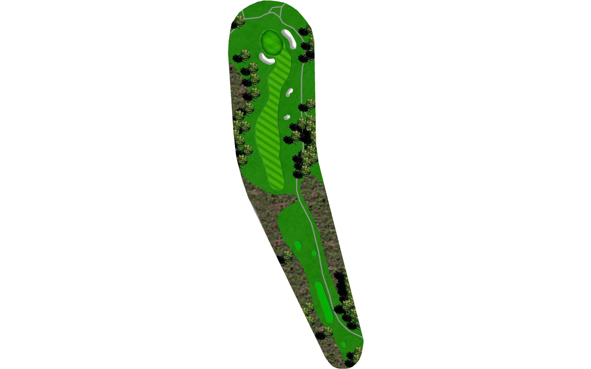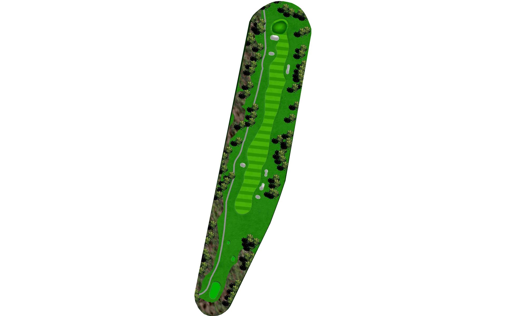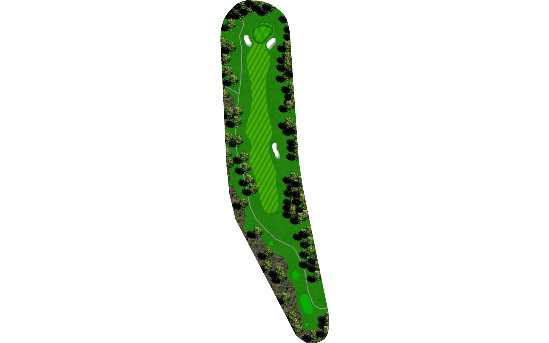 A mid-length par 4 that requires an accurate tee shot to have a chance for a birdie. Avoid the two fairway bunkers guarding both the right and left side of the fairway. Big hitters can carry the fairway bunker on the right while putting the left fairway bunker in play. Play your drive down the right center of the fairway to have a short to mid iron into the gently sloping green. Avoid the greenside bunkers on the left or right or you will have a difficult attempt to get up and down to save your par.