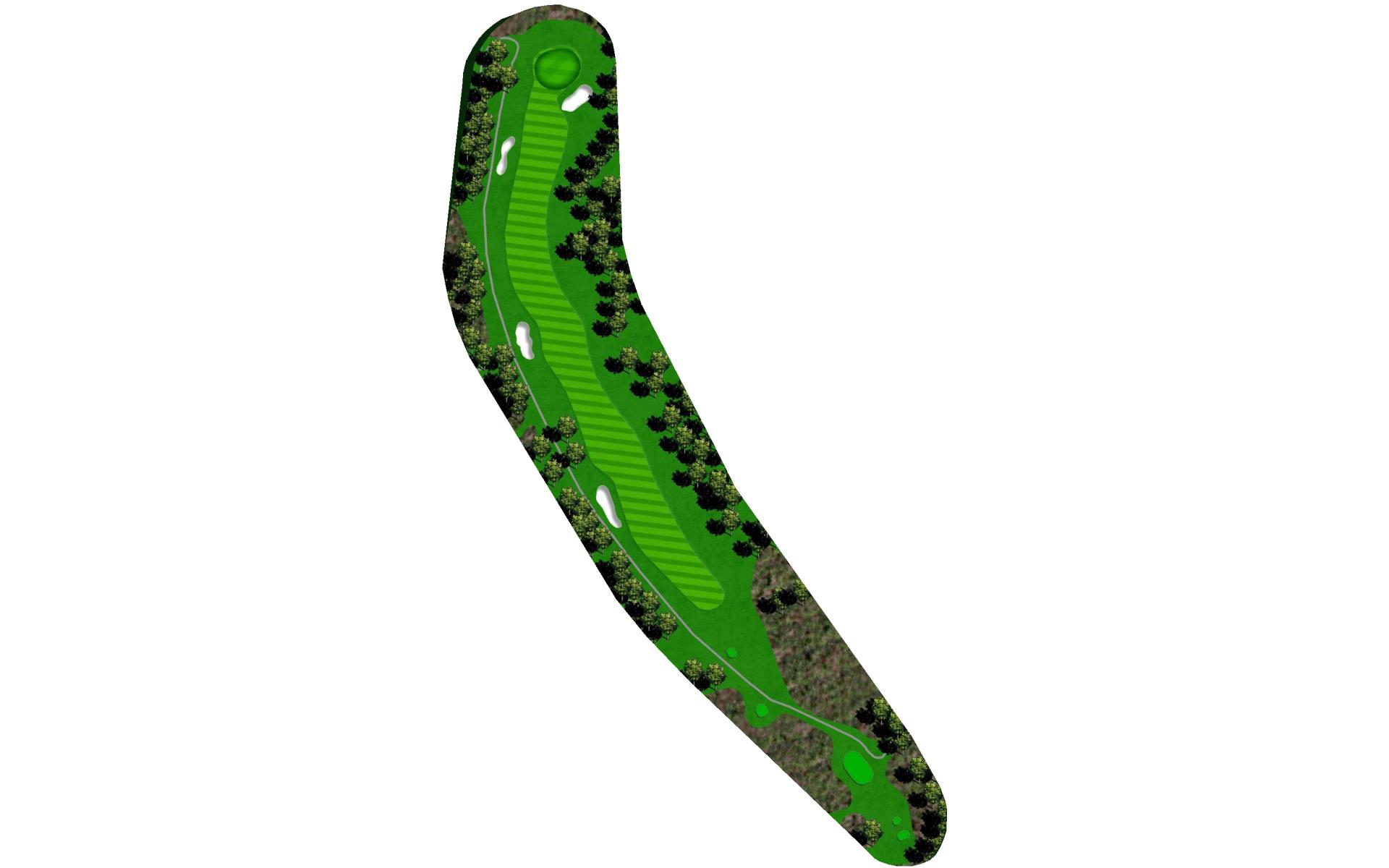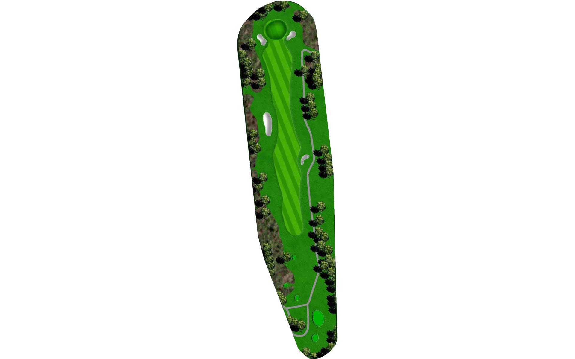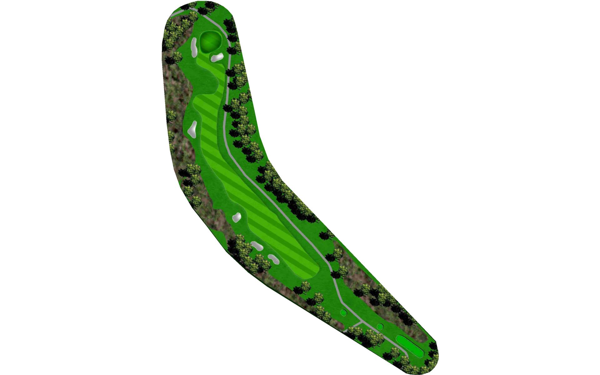 A mid-length par 4 that requires an accurate tee shot to have a chance for a birdie. Avoid the two fairway bunkers guarding both the right and left side of the fairway. Big hitters can carry the fairway bunker on the right while putting the left fairway bunker in play. Play your drive down the right center of the fairway to have a short to mid iron into the gently sloping green. Avoid the greenside bunkers on the left or right or you will have a difficult attempt to get up and down to save your par.