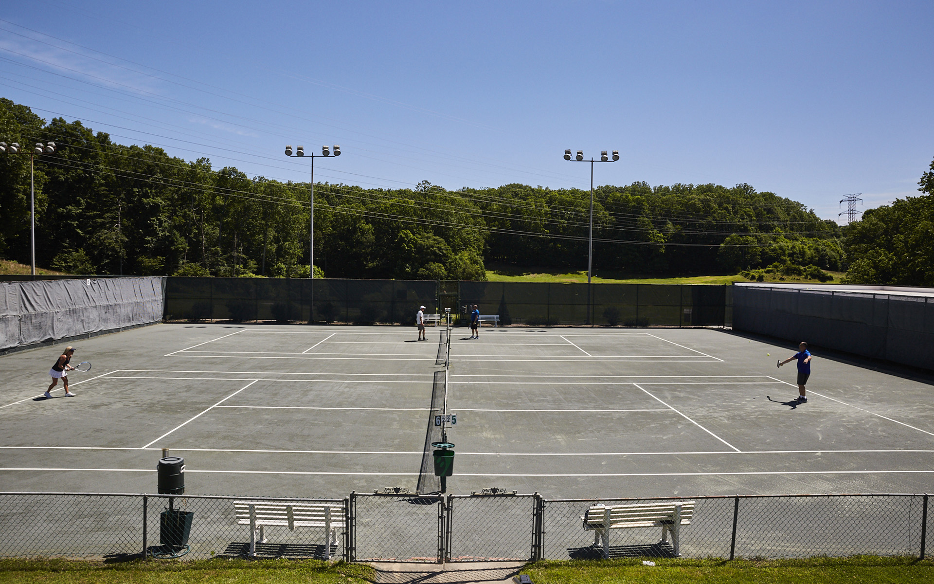 At our club, we offer a comprehensive range of racquet sports amenities and programs designed to cater to all enthusiasts. Our facilities include eight Har-Tru tennis courts, with four lighted courts for late play, available from April to October (or until the first frost). We host a variety of social events and specialized programs such as Cardio Tennis, tennis camps, and lessons and clinics for all skill levels. Our interclub competitive program is available for men, ladies, and children, providing a competitive edge and community spirit. The fully stocked Tennis Pro Shop features top-of-the-line merchandise, as well as re-gripping and re-stringing services, and video analysis to help you improve your game.