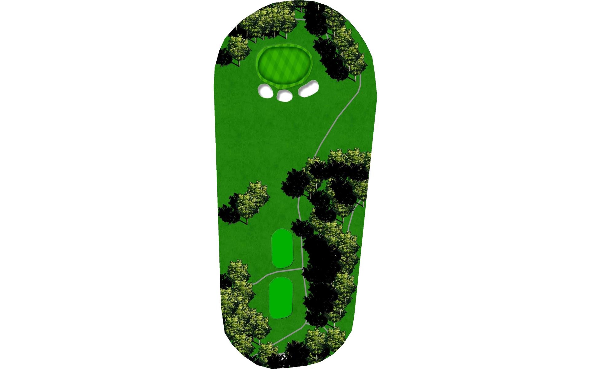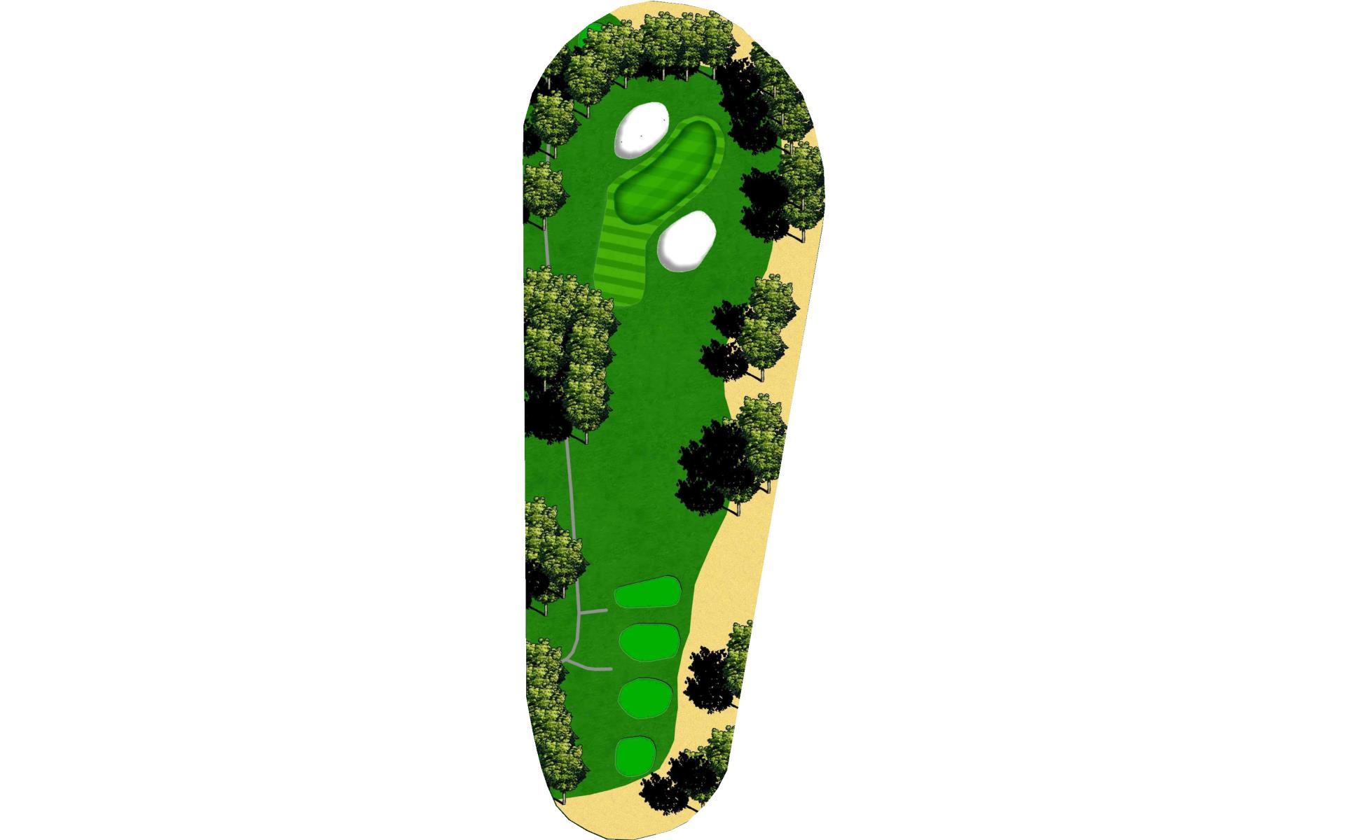 Tee shot out of a shoot off the back tee demands an accurate shot, but the green has little movement. If you get it on, you have a shot to drain it from anywhere.