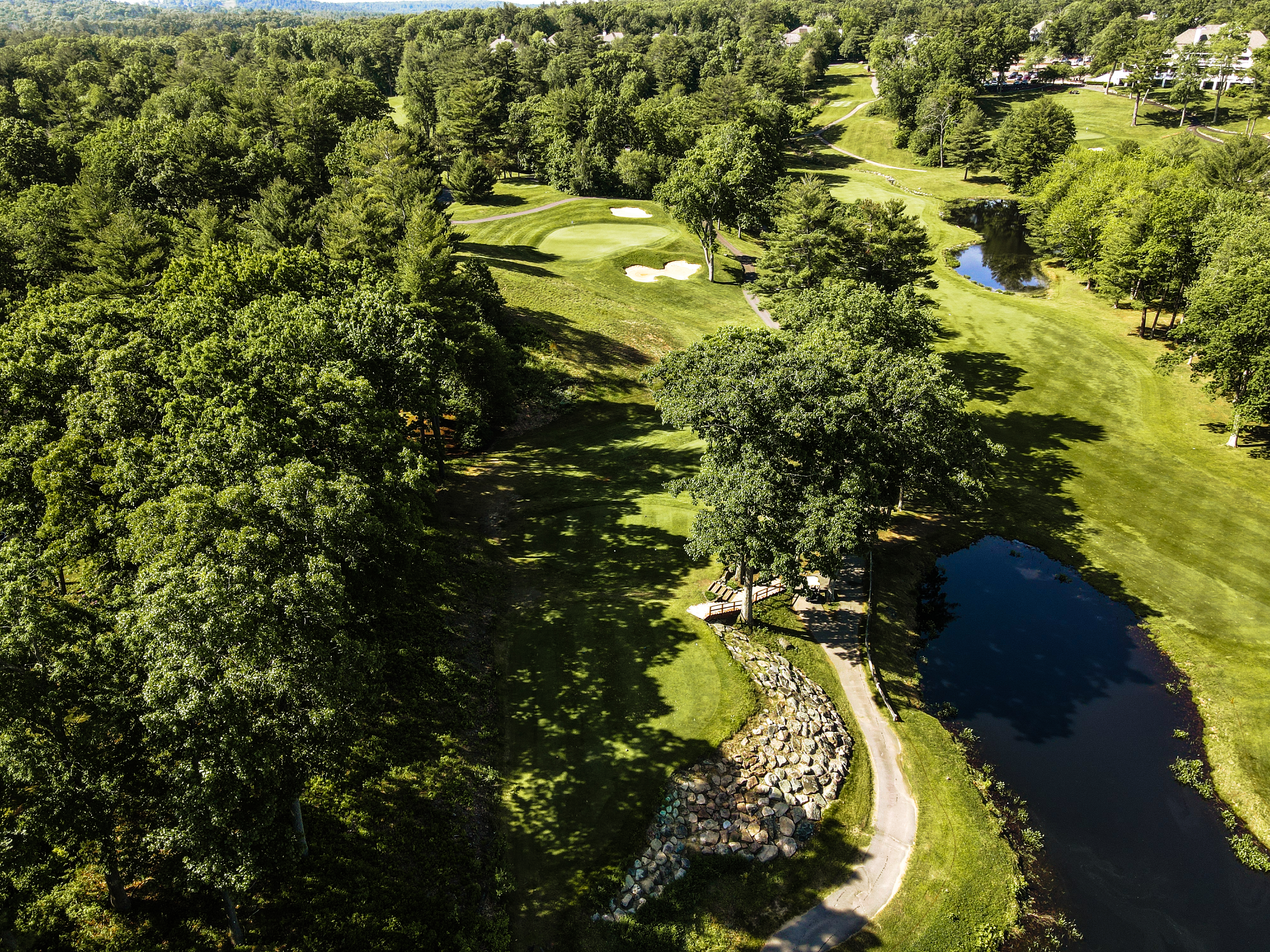 The final par 3 typically plays shorter than its yardage and demands an accurate tee shot if a player wants a shot at birdie. Anything right can result in a ball catching the slope and ending in disaster in the woods.