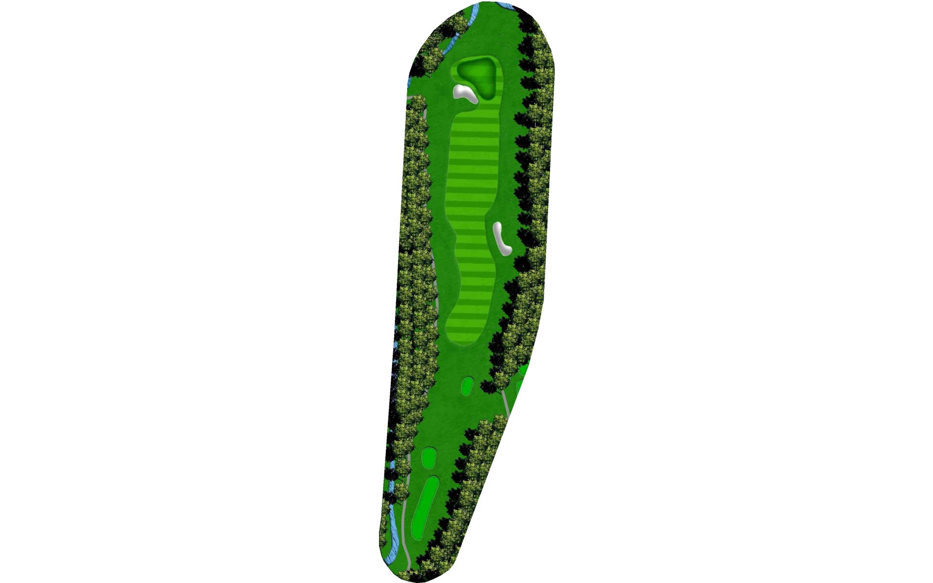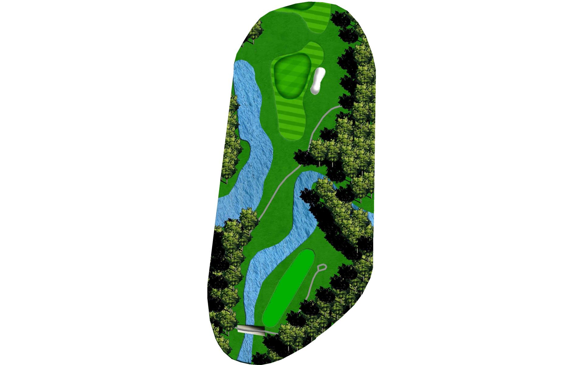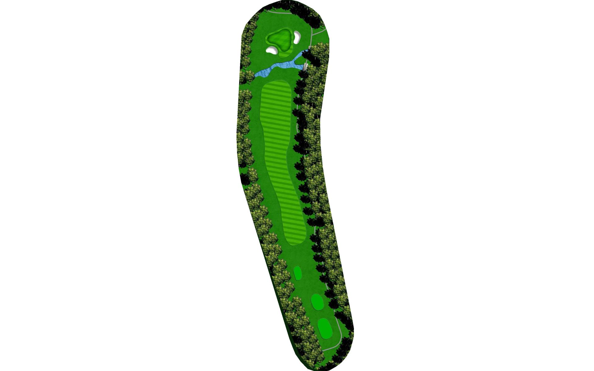 | An accurate drive is most important. Don't cut too much off the dogleg or get blocked by tall trees. Club selection is vital on your second shot. |