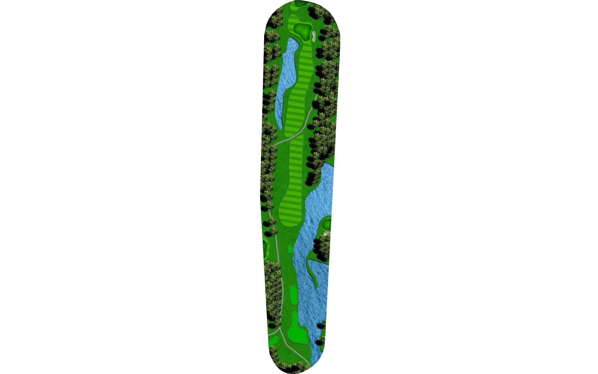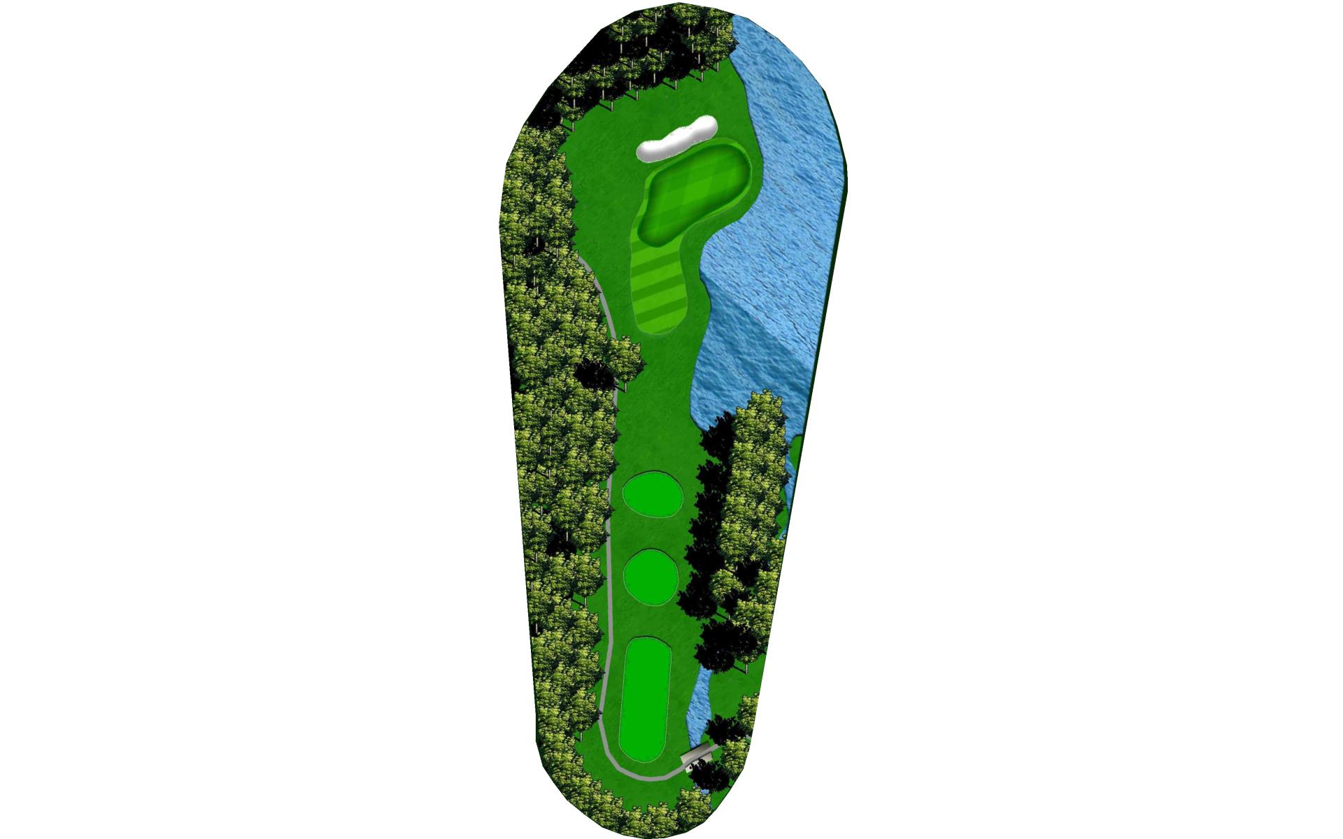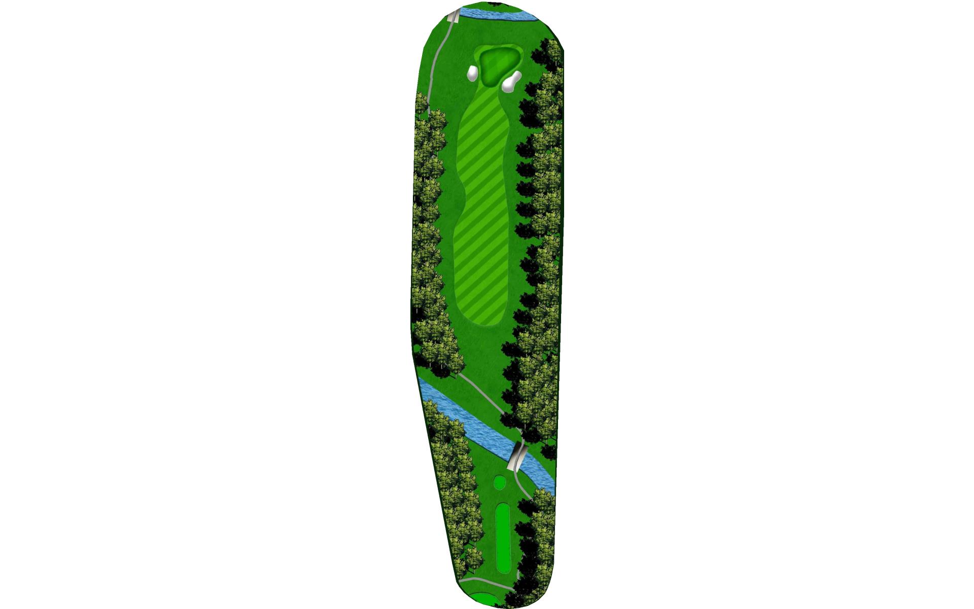 | An accurate drive is most important. Don't cut too much off the dogleg or get blocked by tall trees. Club selection is vital on your second shot. |