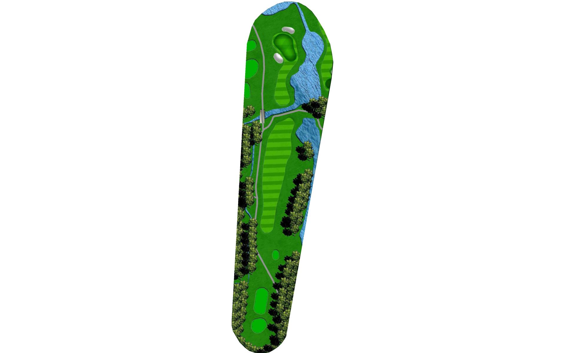 | The longest hole on the course is extremely difficult to reach in two shots because of the pond guarding the green. The smart play is to lay up short of the pond. |