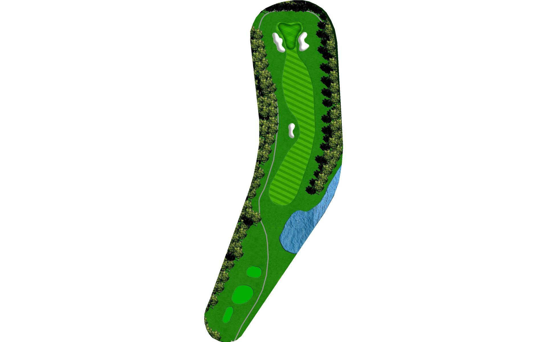 | Focus on accuracy off the tee on this straight par 4 to miss the water on the right, and continue to be accurate as you approach the horseshoe green. |