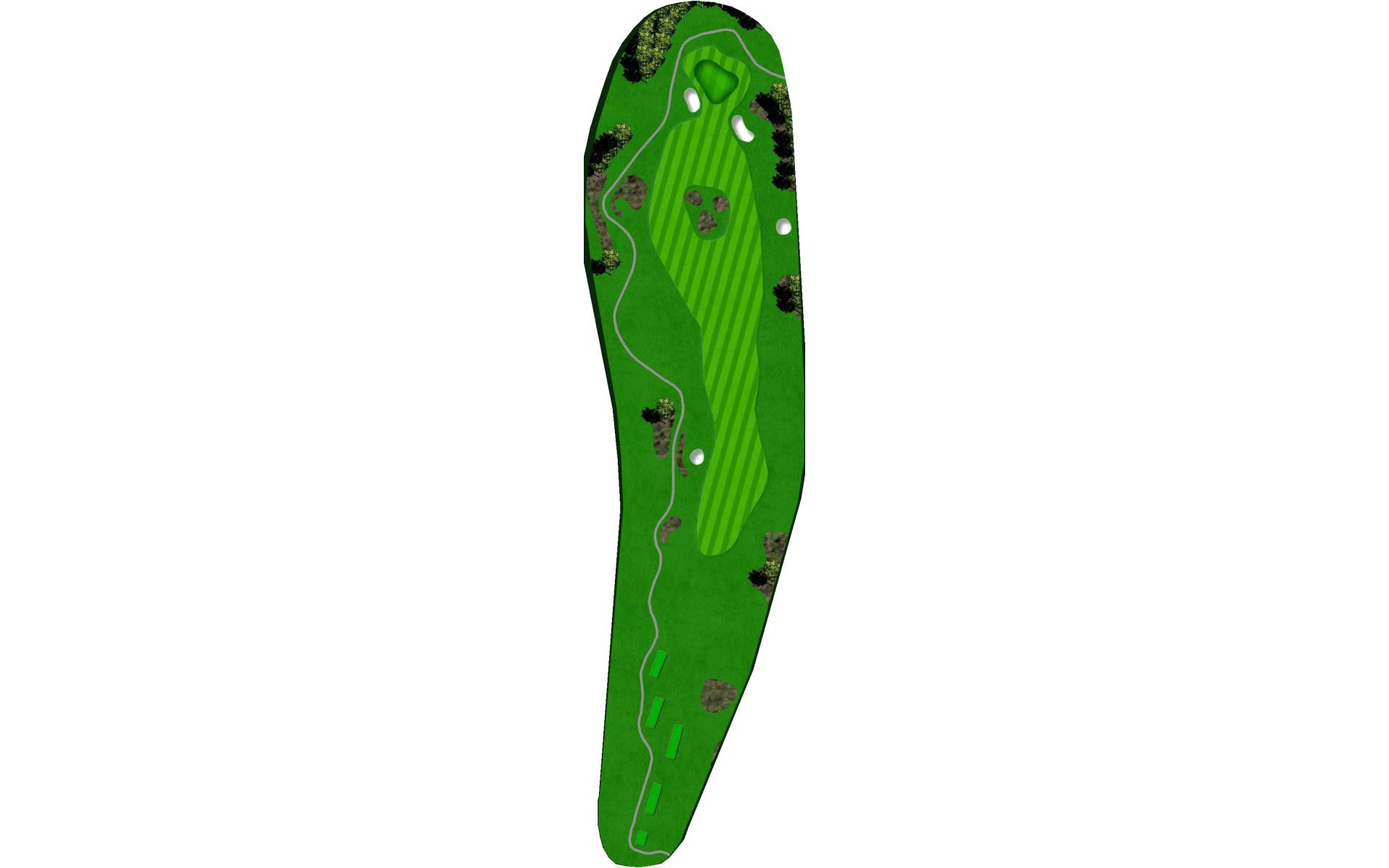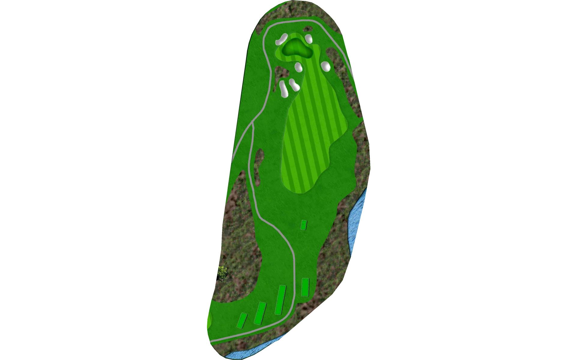 This hole emulates the design characteristics of the infamous Hole No. 8 at Royal Troon. This “smallish” target is guarded by deep bunkers to the right, one to back left and one short left. Do not miss, or bogey may appear on your scorecard.