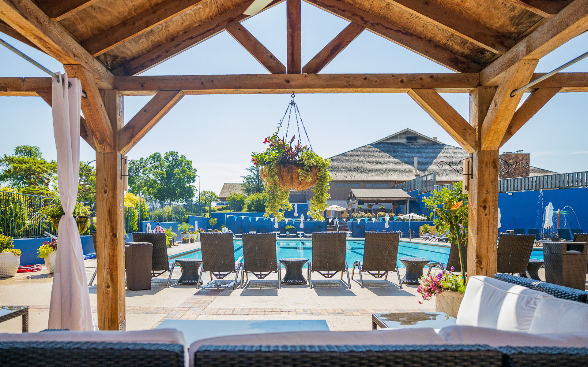 Oak Tree's Olympic-sized swimming pool is fit for the whole family, no matter the kind of water relaxation you're looking for. With a diving board, a splash pad and certified lifeguards always on duty, a relaxing dip couldn't be easier. Need a break for a bite to eat? Our poolside café offers a grill menu and poolside service, not to mention a game room. It also features a full bar so Members can grab a drink while relaxing by the pool with friends or that golf opponent you just beat by one stroke.