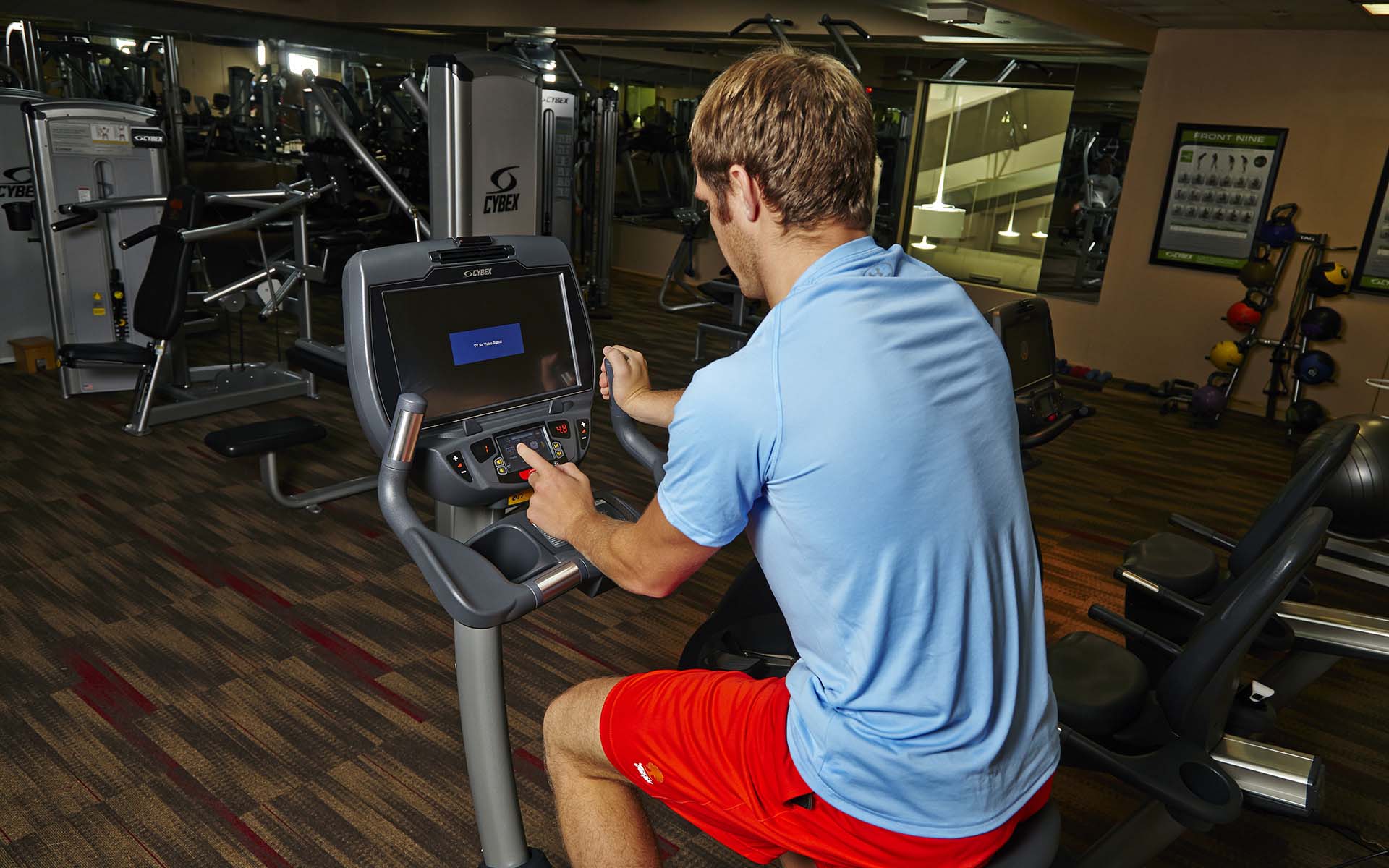 Thanks to our emphasis on fitness, Members don't have to join a local gym; they can simply take advantage of our very well-appointed fitness center, which features virtually every piece of equipment and program you may need to stay fit and feel energized. Our 2,000-square-foot fitness center includes premier equipment, including Cybex Fitness machines, three treadmills, two ellipticals, two Cybex striders, two AMP Free Runners and three stationary bikes. We also offer Members a wide variety of dumbbells and other free weights. Private classes, including stretching and yoga, are available.
