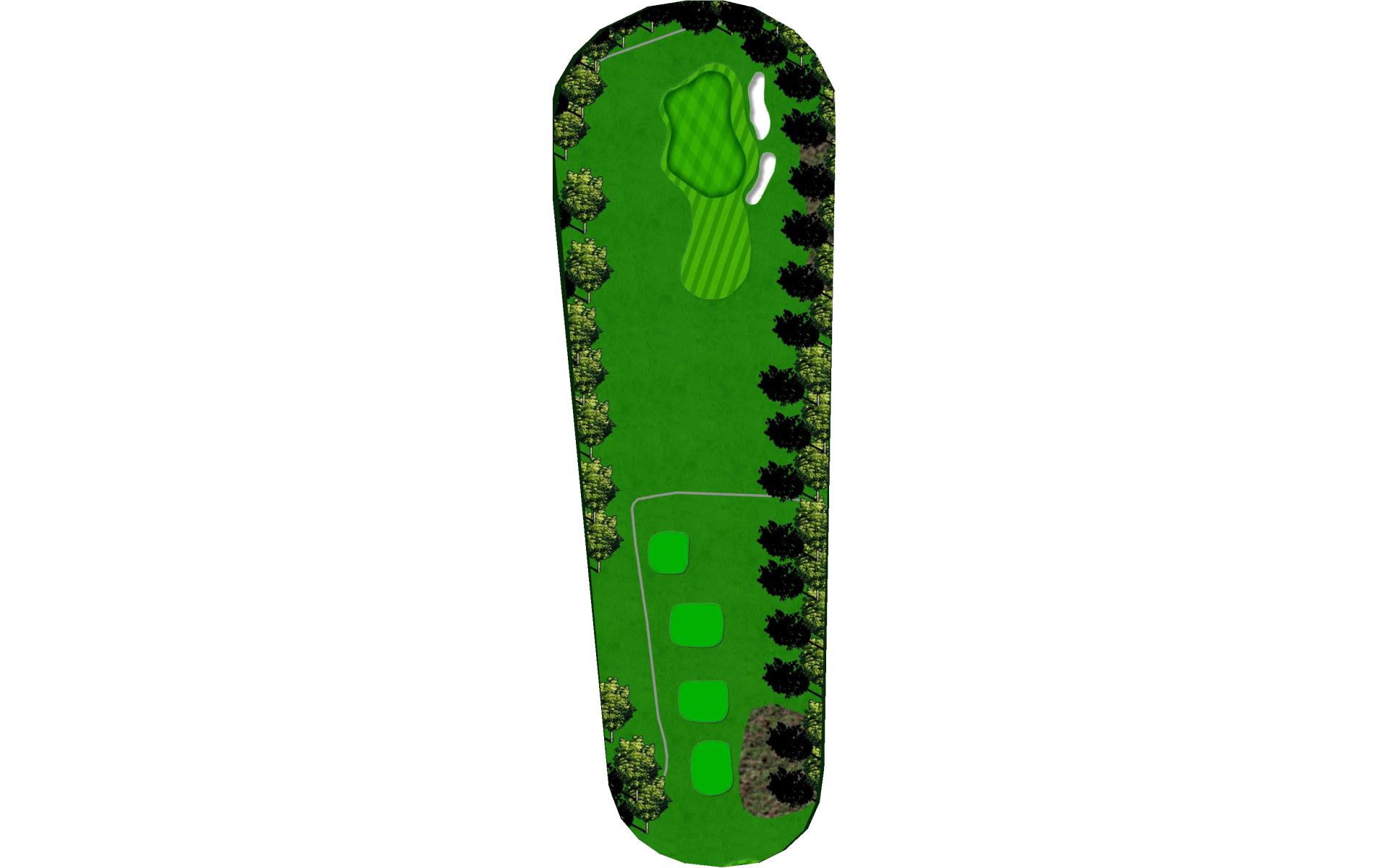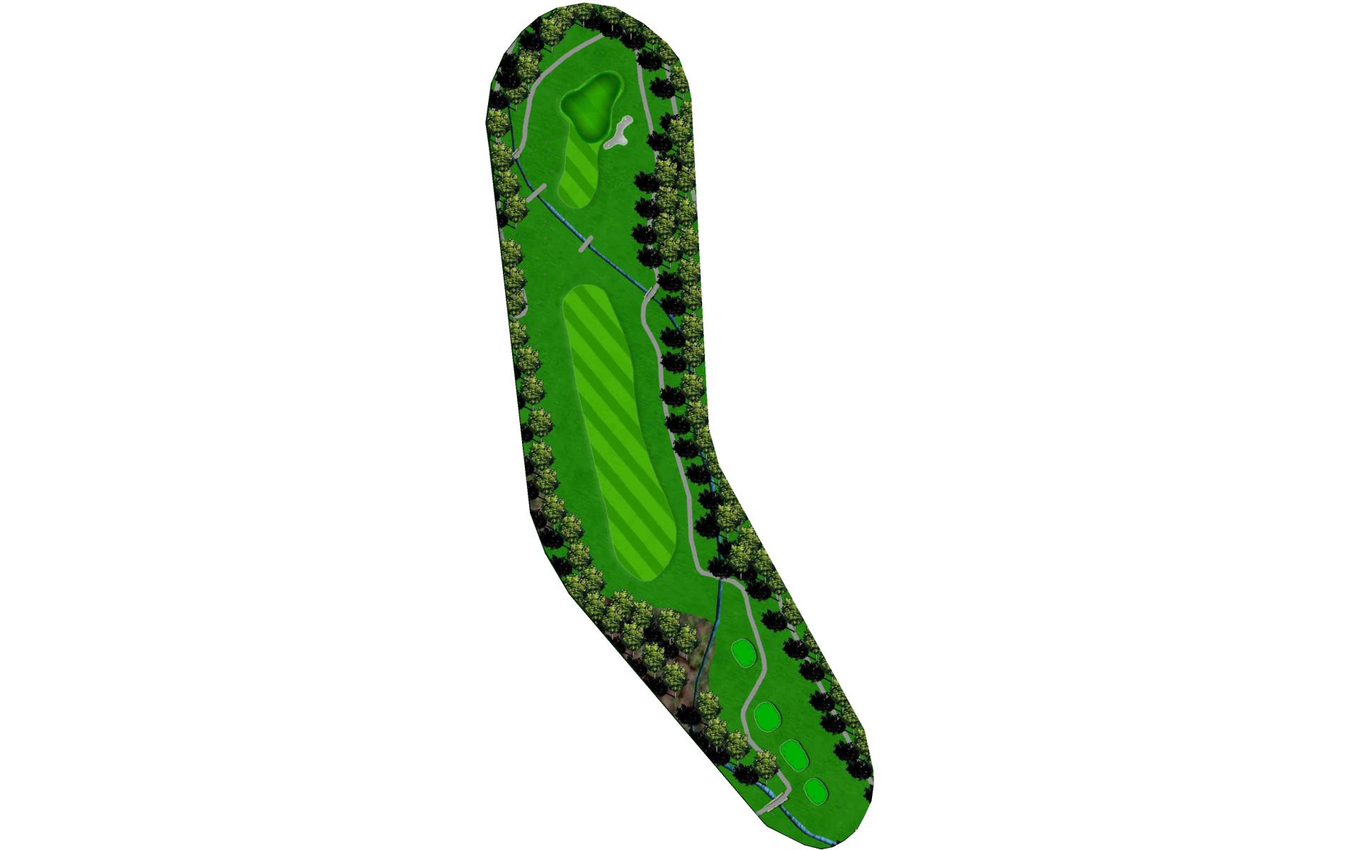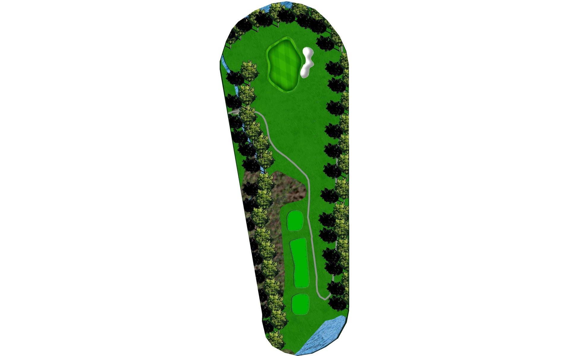 Tight Par 4 with creek along the right side of hole. Large green with middle slope.