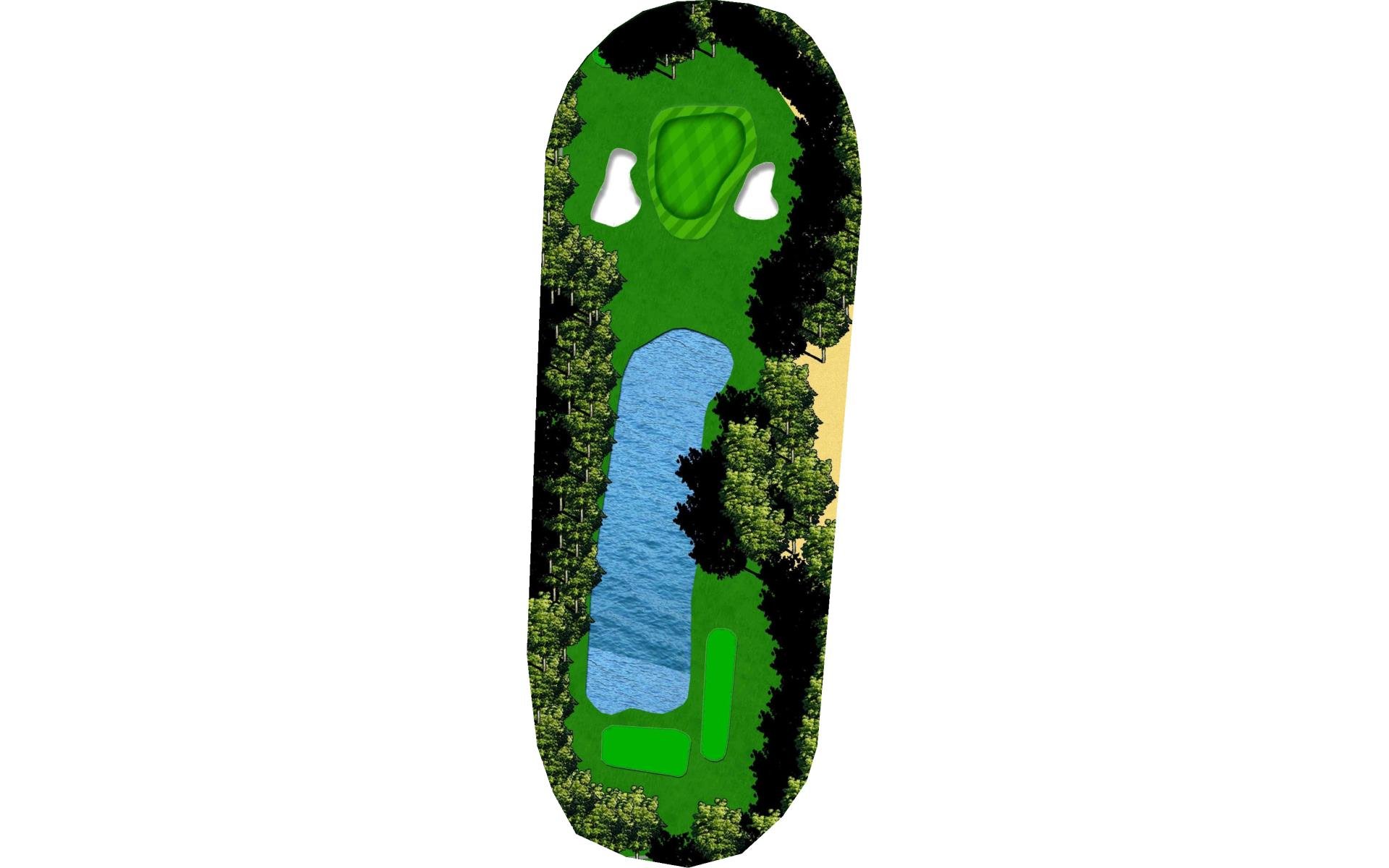 This long par 3 features water and a bunker in front of the green. Players need to make sure they take enough club to land safely on the putting surface.