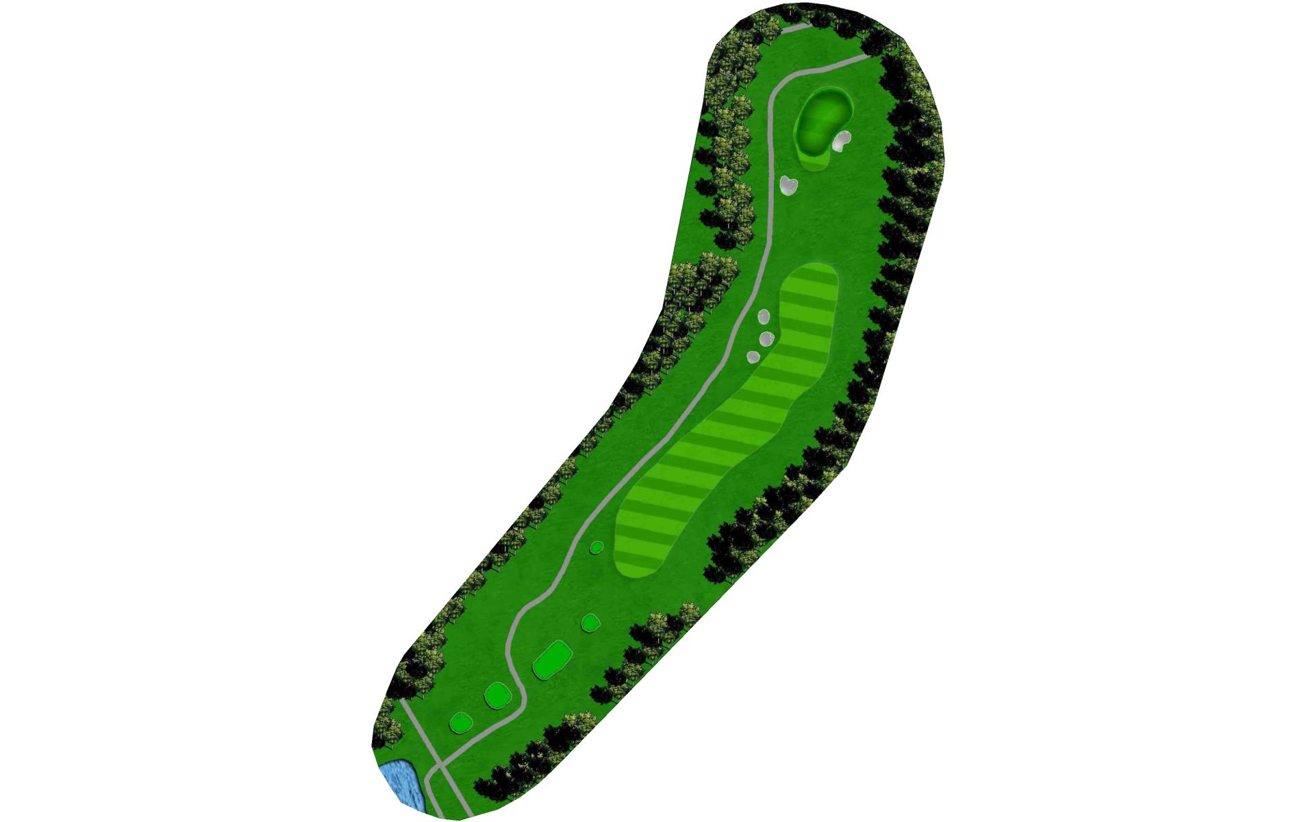A difficult dog leg right, par 4 with a sloping fairway to the right. Out of bounds left and a penalty area to the right will require an accurate