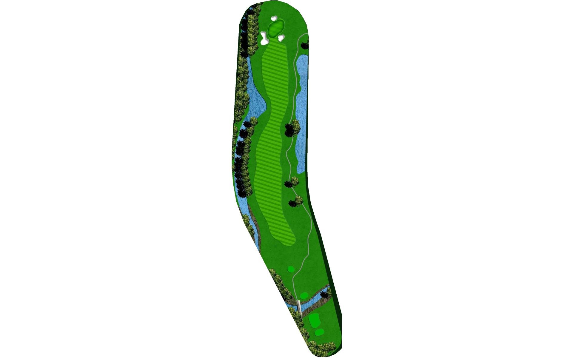 This short uphill Par 4 has the narrowest fairway on the golf course. Water to the left and a fairway bunker on the right encourage an iron or fairway wood of the tee. A large tier in this green requires that you plan an accurate approach.