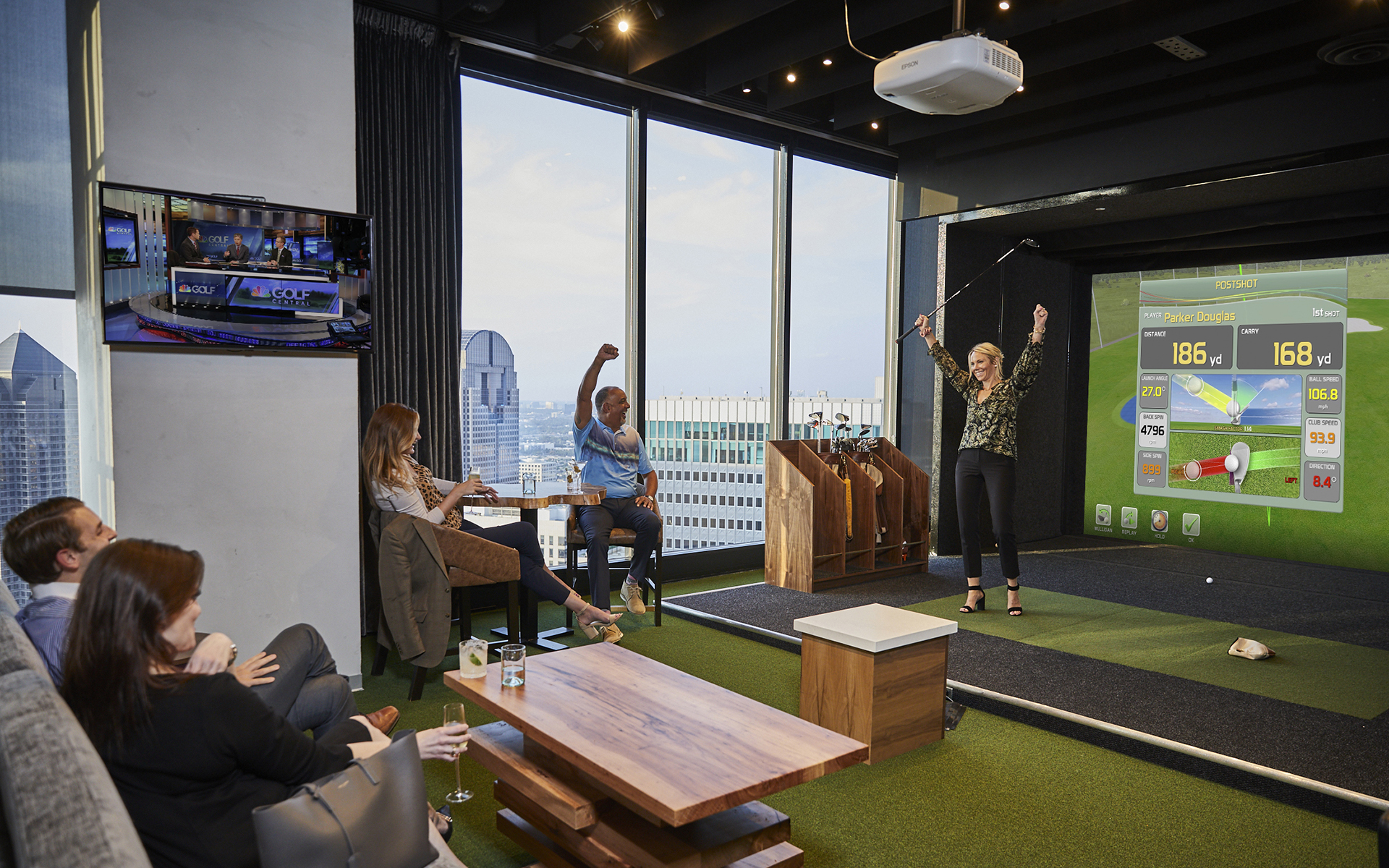 Here's the tee. BigShots Lounge is the hottest virtual golf experience in Dallas – ideal for team-building events and post-meeting gatherings. Equipped with TrackMan technology, you and your team can perfect your swing with high-tech games, championship golf course simulations, and next-level hospitality. Oh, and did we mention the view?