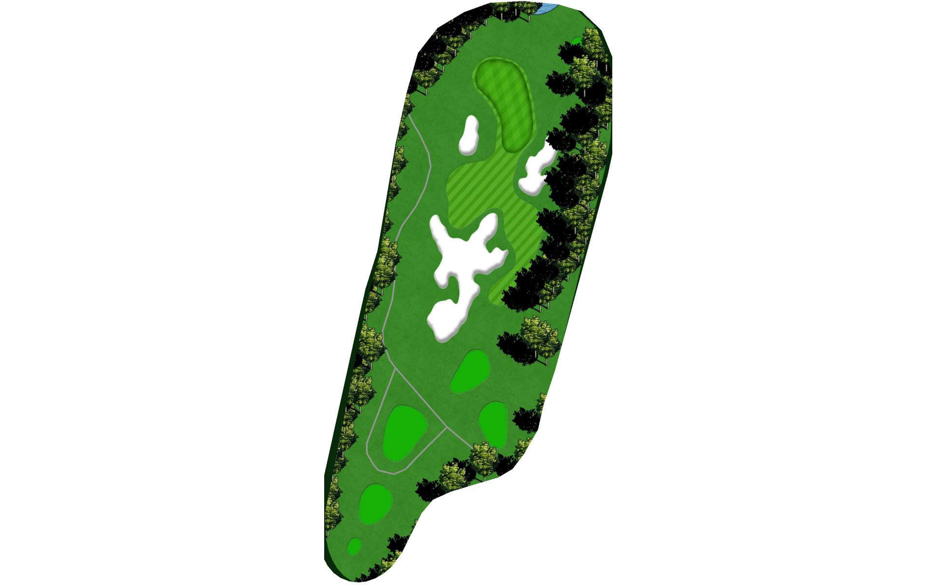 The 13th hole is our longest hole on the course. It is a straightaway par 5. The holes best defense is its length. If you can hit 3 straight shots, you have a good chance of getting on this green in regulation. Thie green is one of the biggest on the property.