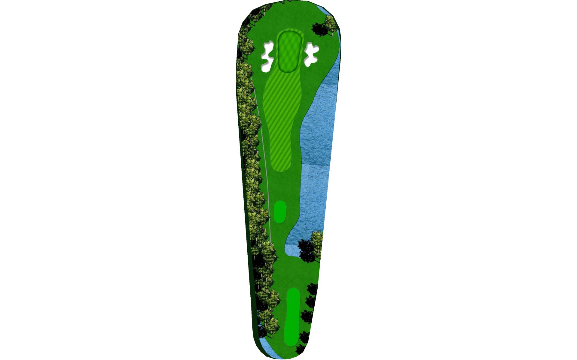 | The shortest par 3 on the course. Be careful of the wind above the treeline as it may push your ball into the water right or bunkers left. |