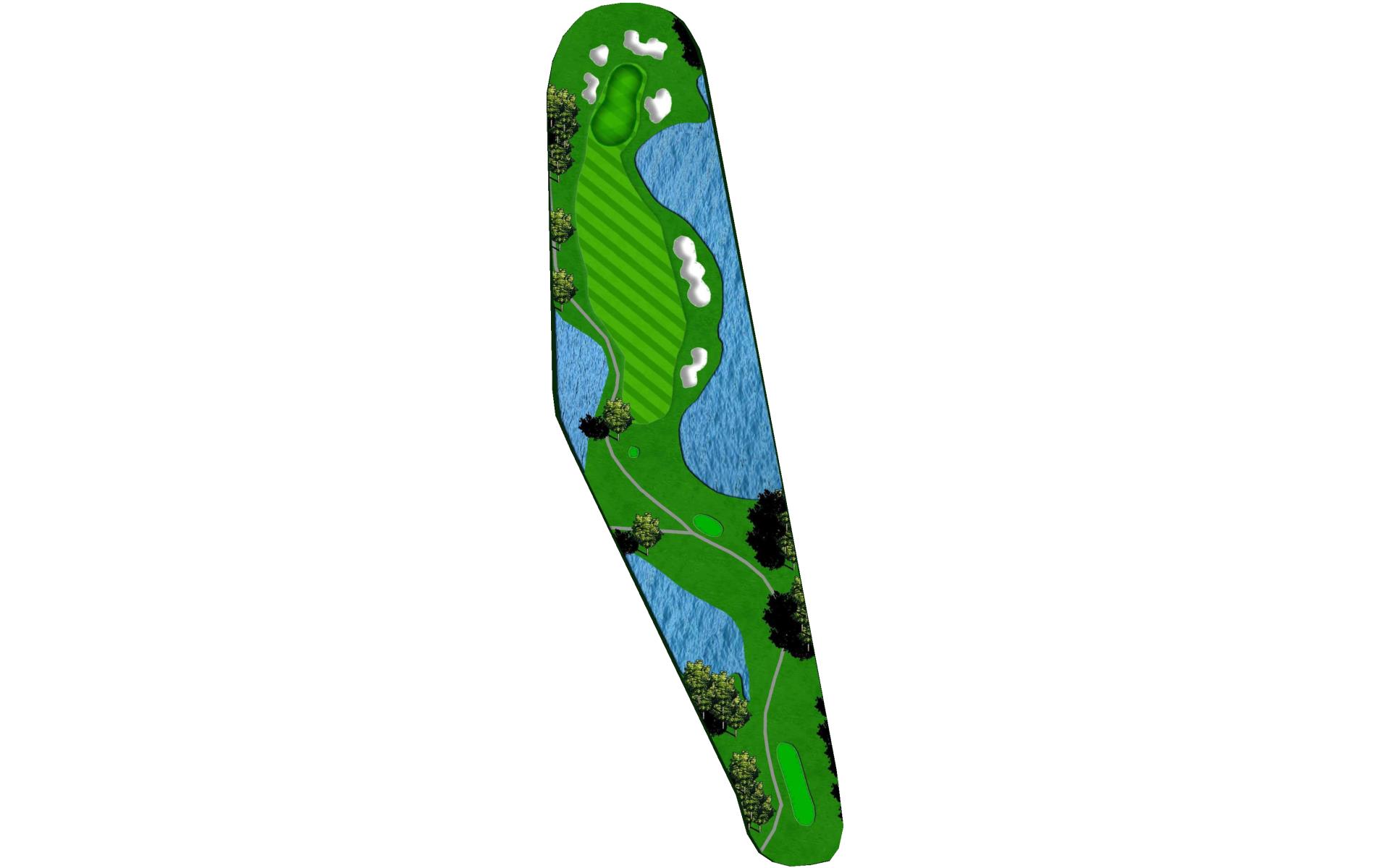 | A good risk/reward hole. If laying up, be aware of the lake in front of the green. If going for green in two, be careful not to go short, long or right as there is water everywhere. A very challenging green to get the ball close. |