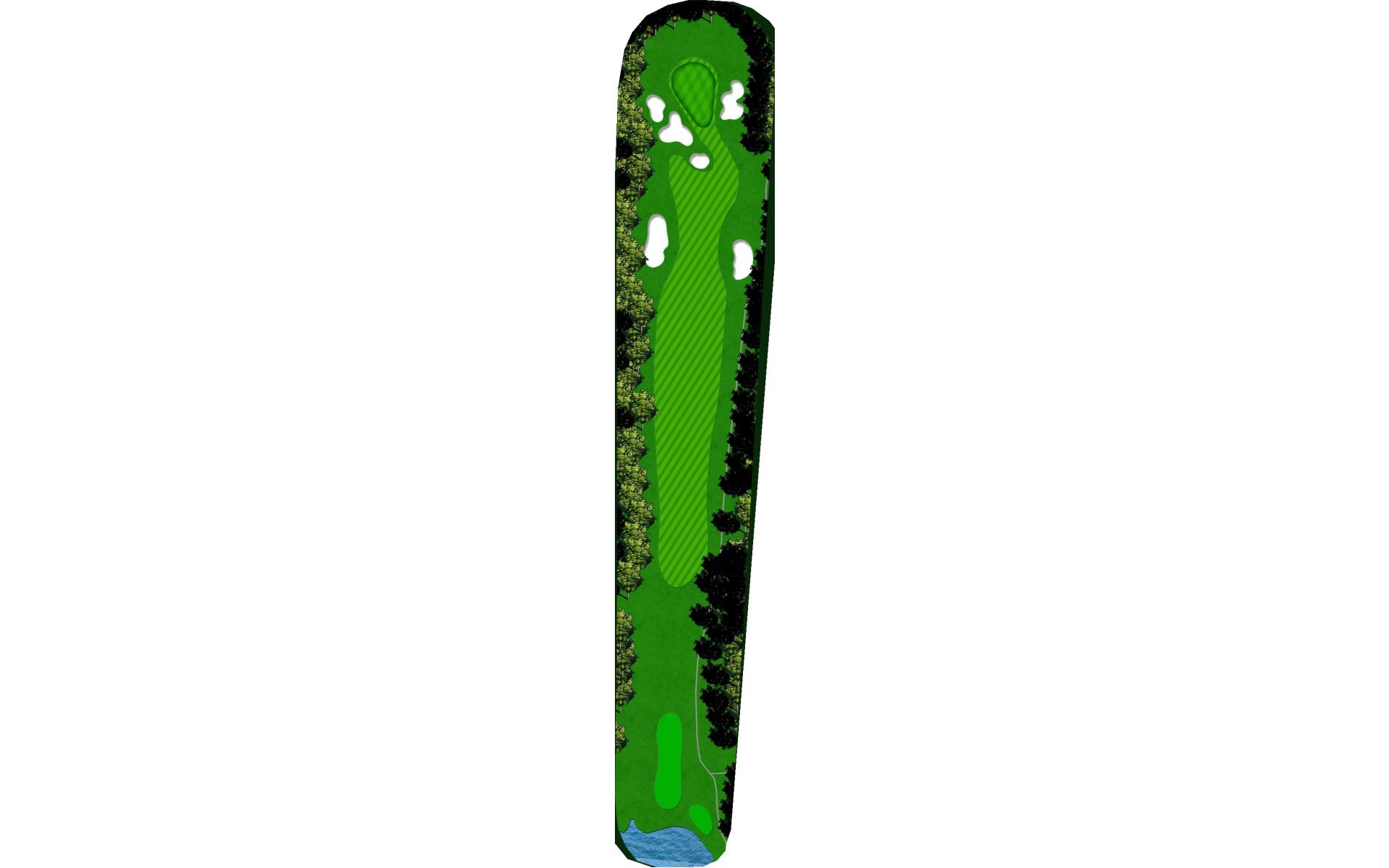 | This short par 4 is a great risk/reward hole, with water right and out of bounds left. A good approach shot will lead to a great score. |